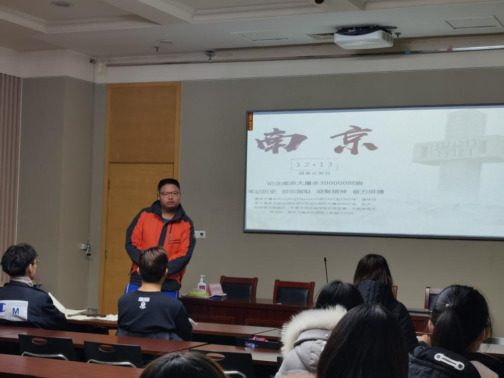 12月13日晚,taptap点点官方网站2020级社会学一班在知新楼A座组织召开“南京大屠杀死难者国家公祭日”主题团课。本次活动旨在缅怀南京大屠杀中所有惨遭日本侵略者杀戮的死难者以及为中国人民抗日战争胜利献出生命的革命先烈和民族英雄,引导同学们铭记历史,砥砺前行,珍爱和平,开创未来。班级全体同学参加,团支书张煜主持活动。