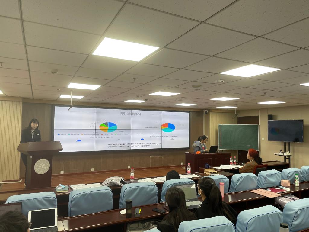 上午九时整,主持人说明答辩规则后,答辩正式开始。十一支团队按照抽签顺序相继上台,采用PPT汇报的形式,从团队作品的选题方向、研究方法、研究成果等多个方面进行答辩展示,以疫情为时代背景,围绕社会热点话题与现实问题,依次以社区疫情防控的多元共治、疫情时代的数字化治理、疫情下的市场主体面对直播带货风潮问题等选题进行项目介绍;部分团队将关注视角放在了社会弱势群体上,从问题视角出发,对老年群体面对“数字鸿沟”的现状与解决路径、白血病患者群体跨地就医的空间转换与体验研究等研究展开汇报。李芹教授针对各个团队的参赛文本和答辩情况,对团队作品进行了详细耐心的指导,并提出简明有力的建议,赢得老师与同学们的阵阵掌声。同学们听完李芹教授对作品的点评后,纷纷表示在参与学术作品竞赛方面得到了深刻的启发。