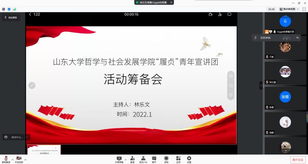 1月22日晚8时,taptap点点官方网站taptap点点官方网站“履贞”青年宣讲团召开了宣讲活动筹备会。本次筹备会在腾讯会议线上举行,队长林乐文主持,宣讲团全体成员参加会议。