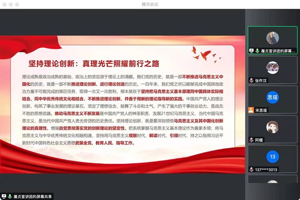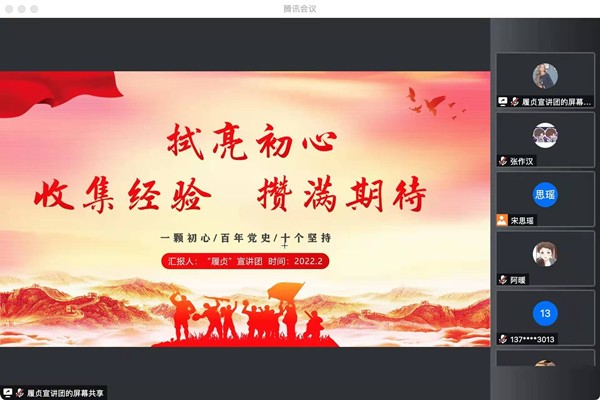 2月11日19时30分,taptap点点官方网站“履贞”宣讲团青岛分站——城阳区老年大学宣讲活动举行。本次宣讲由“履贞”宣讲团张煜同学主讲,主要面向老年大学学生及有关政府工作人员,宣讲党的十九届六中全会精神。为响应当地疫情防控政策,宣讲于线上腾讯会议举行。