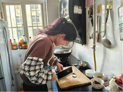 劳动实践让同学们体会到亲情的温暖与劳动的价值。2024级社会学本科生张钧博在准备家宴的过程中,从采购食材、清洗切配到烹饪上桌,每一步都充满挑战,尤其是在处理复杂菜品时,手忙脚乱,但他虚心向父母请教,最终做出了一桌美味佳肴。那一刻,他深刻理解到劳动不仅能带来成果,更能为家人创造美好回忆。同学们走进厨房传递亲情,拿起工具让小家焕然一新,用劳动开启崭新的一年。