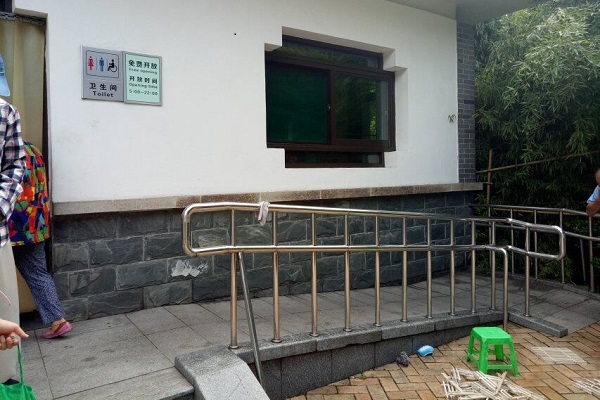 结果与我们的预想大抵相同:盲道被占主要与移动车辆有关,如停在盲道上的机动车;其次是井盖,井盖横跨盲道现象常见;另外还有固定设施遮挡部分盲道,如公交站牌、扩建的周边建筑、街边的大树;最后我们也发现了存在盲道在末端和拐角处未标注的情况,条状盲道和点状盲道未进行合理的区分。而针对大型服务型场所我们进行了如下发现:所有医院均有无障碍通道和无障碍卫生间;大部分银行有无障碍通道,部分银行有无障碍窗口;三星级以上公共厕所有无障碍卫生间;广场附近基本都有公共厕所,但无障碍设施欠缺。