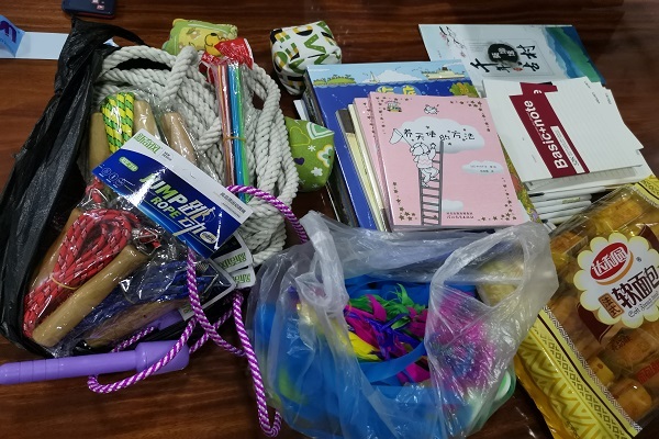 除此之外,队员们还为当地的孩子们准备了精美的童书绘本、日常文具、跳绳沙包毽子等体育用品,来丰富孩子们的娱乐生活和精神生活,希望他们拥有强健的身心体魄,能够茁壮快乐成长。