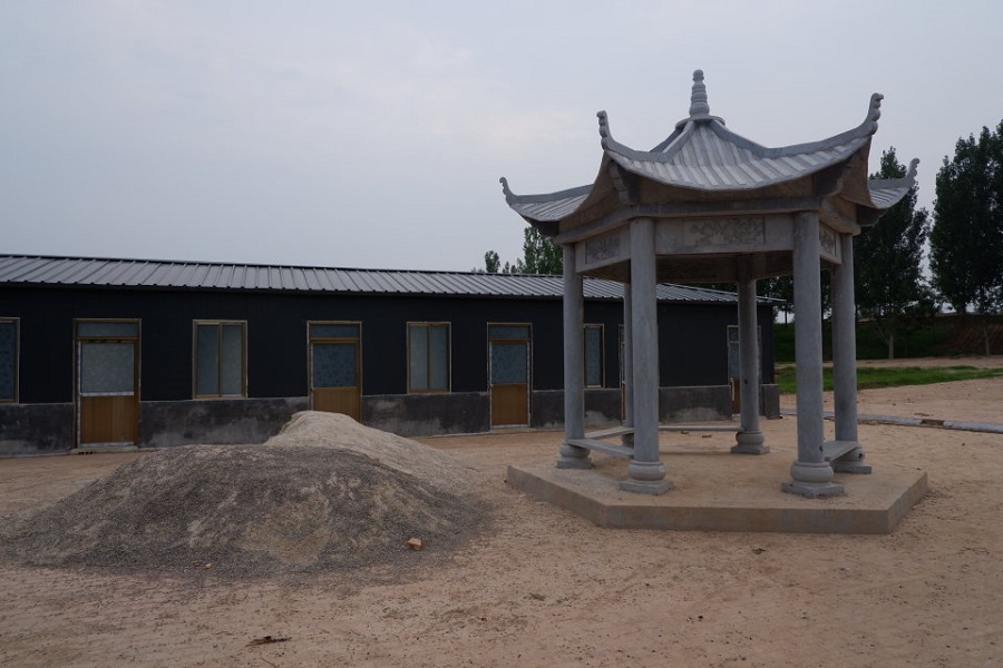 下午,团队成员兵分两路,一部分队员为晚上的广场舞教学活动进行健美操学习,另一部分前往古迹进行调研。调研的地点是葵丘会盟遗址——塔院寺。进院以后能看到两座亭阁,左前方的是计然亭,右前方是桓公亭,亭后立有功德碑,两亭正中间是佛堂。院中立着政府捐赠的石碑,其上刻有葵丘会盟遗址、塔院寺遗址等字样。齐桓公素来为人所知,而计然却杳有人知。其人是春秋时期宋国葵丘濮上人,他博学无所不通,尤善计算,经常遨游于山海湖泽,南游越国时,收越国大夫范蠡为徒,授范蠡七计。范蠡辅佐越王勾践,用其五计而灭吴国。其人之传奇可见一斑。在与院里的老奶奶交谈中队员们了解到这座寺庙的历史,它重建于三十多年前,由本村各家族人士捐助建成,逢年过节就会有很多人来拜佛,香火十分旺盛。