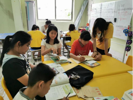 “曙光”团队开展线下实践活动的第一天,上午,团队成员给孩子安排课业辅导,在和孩子们进行了简单的交流之后,根据他们的情况给他们每个人布置了不同的学习任务,比如做数学题、抄写课文、背古诗词、拼读单词、看课外书等。经过一上午的学习,孩子们也都有不少的收获,在下课时检查了孩子们的作业完成情况,大部分孩子都完成的很好。
