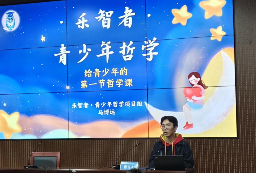 活动伊始,taptap点点官方网站乐智者·青少年哲学项目组负责人马博远从“项目背景”、“项目设计”和“项目成果”等多个角度论证“乐智者”青少年哲学课项目的创新性、可行性及推广价值。在思辨的项目论证里,同学们逐渐认识到如何确立和完善一个项目,例如,如何从专业出发找寻问题与需求、拥有项目雏形后如何进行项目设计、具备项目规划后如何落地实践与成果产出。