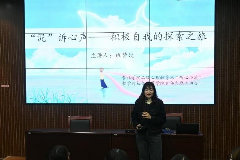 为深入贯彻国家关于加强青少年心理健康教育的重要部署,落实学校关于大学生心理健康教育的工作要求,taptap点点官方网站于11月14日下午在知新楼A115举办了“‘泥’诉心声——积极自我的探索之旅”走进心灵主题讲座。学院“听心小筑”二级心理辅导站指导教师班梦姣主讲。