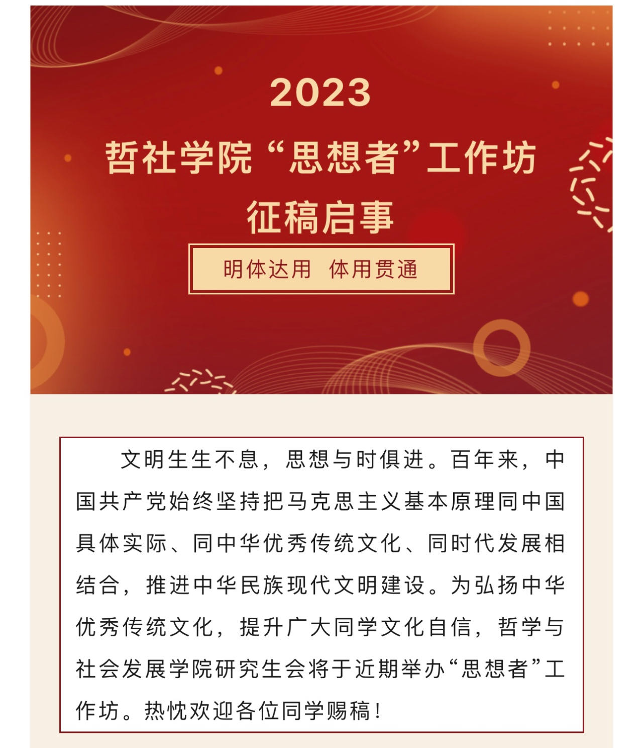 为落实立德树人根本任务,搭建“以文育人、以文化人”新载体和新平台,哲社学院着眼校院发展大局,统筹整合精品文化资源,实施开展“启智识,兼知行,全环境立德树人常态化机制探索”一院一品文化建设项目。其中“学思之维——做实做强“思想者”等系列品牌为该项目重要组成部分,旨在更好地搭建学术平台,提高哲社学子的科研创新能力。