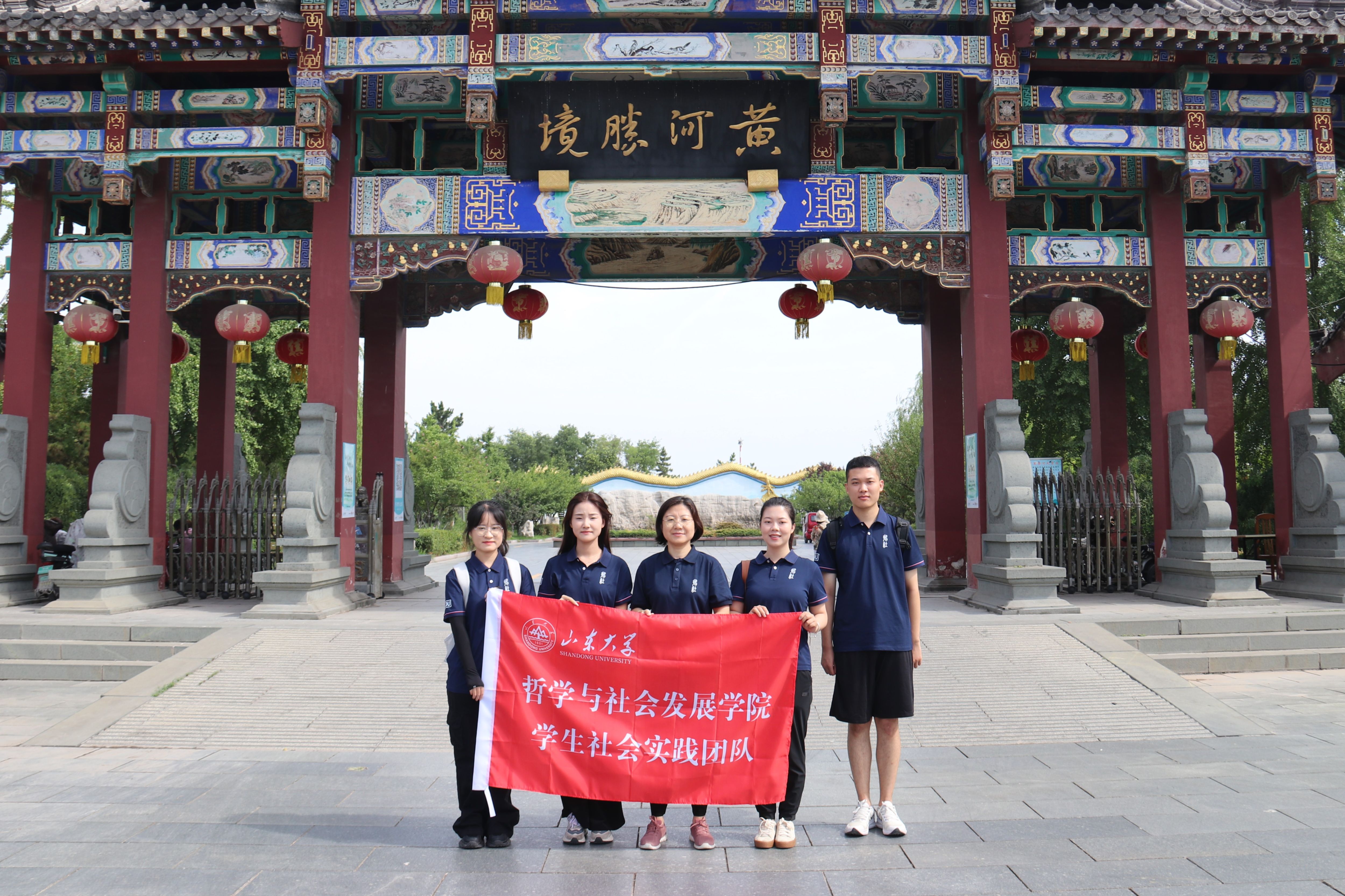 “黄河宁,天下平。”在黄河文化的演进与发展中,治水是十分重要的一环。调研团队员们详细了解黄河治水精神和治理工程最新的河况报告,认真倾听黄河的防汛备汛、设施建设、河长制等情况。如今的黄河工作者也凭借济南黄河标准化堤防工程荣获“鲁班奖”,这是中国建筑行业的最高奖项之一。巍巍工程堤坝上凝结着军民奋斗的坚韧和黄河治理者的智慧。在专业导师王新春、思政导师吕汶鑫的组织和指导下,调研团兼顾广度与深度,充分发掘文化精神遗产在黄河流域开发和城市发展语境下促进新质生产力的重要作用,在多处爱国主义教育示范基地开展红色宣传教育活动,累计服务500人次,形成了积极正向的社会反响。