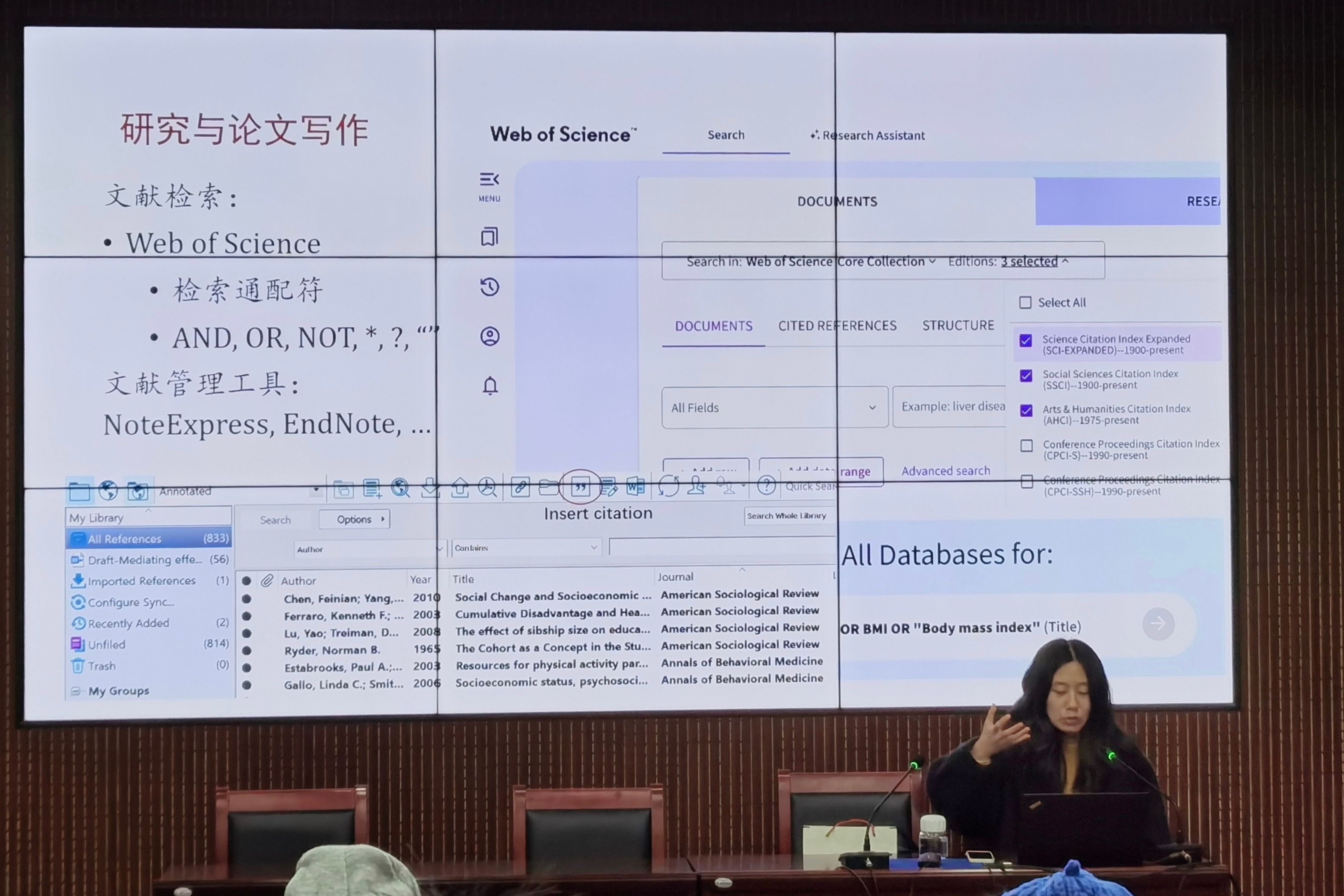 针对学术论文的写作,李瑶玥老师详细讲解了研究选题、文献检索、论文写作等技巧,强调研究选题应基于兴趣,并通过大量和长期阅读积累思考和写作经验。同时,她强调学者要严格遵守学术道德和科研规范,实事求是,保证研究过程公开透明,并慎重使用AI等工具辅助科研。