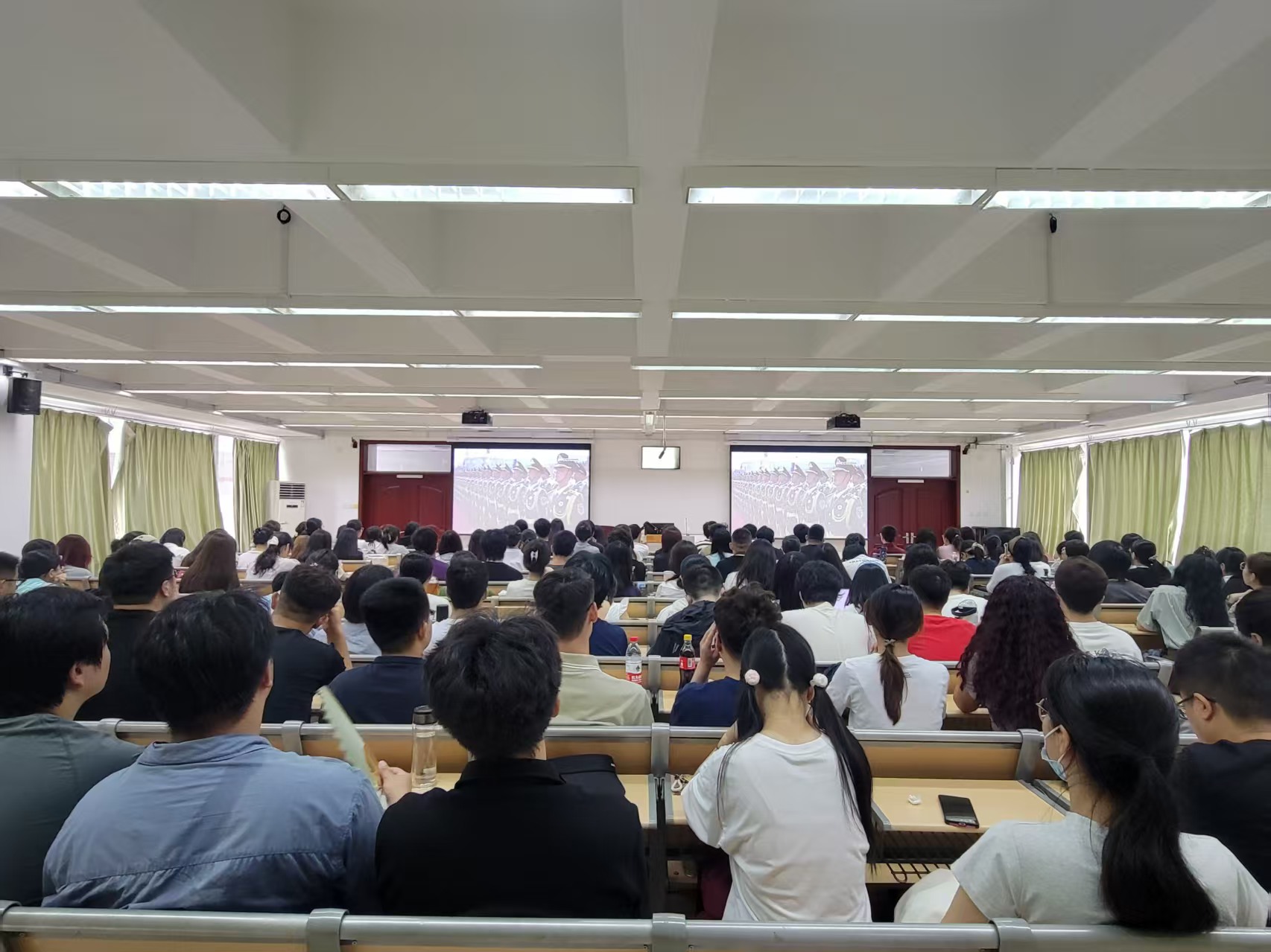 活动过程中,同学们认真聆听习近平总书记的重要讲话,观看庄严的纪念仪式。从徒步方队以铿锵步伐走过天安门,到装备方队展现大国重器风采,再到空中梯队划出壮丽航迹,每一个画面都牵动着在场师生的心,掌声与赞叹声不时响起。