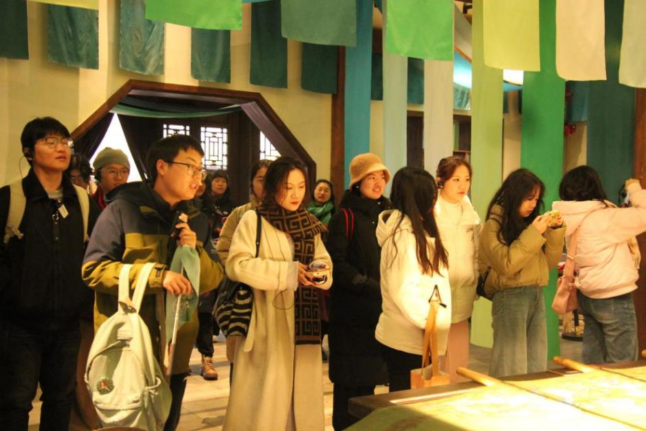 在李清照纪念馆,师生们循着女词人的人生足迹,沉浸式感受其诗词中蕴含的才情风骨与家国情怀。通过馆内陈列,师生深入了解了李清照的人生经历,进一步体会其在逆境中坚守气节、热爱生活的精神品格。导师们以此为切入点,与同学畅谈青年责任与使命担当,引导大家自觉投身传承中华优秀传统文化的生动实践。研究生夏睿桐表示,此次参观让书本中的传统文化变得可感可知,易安风骨蕴含的精神力量,既为个人修养积淀底蕴,更为学术追求注入动力。王雪婷谈到,李清照的家国情怀深深打动了自己,作为山大学子,更应传承这份风骨,以青春担当守护中华文脉。