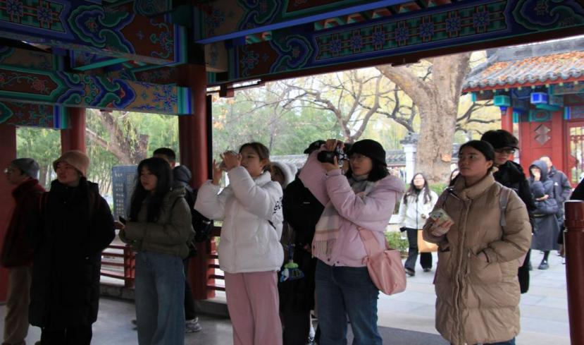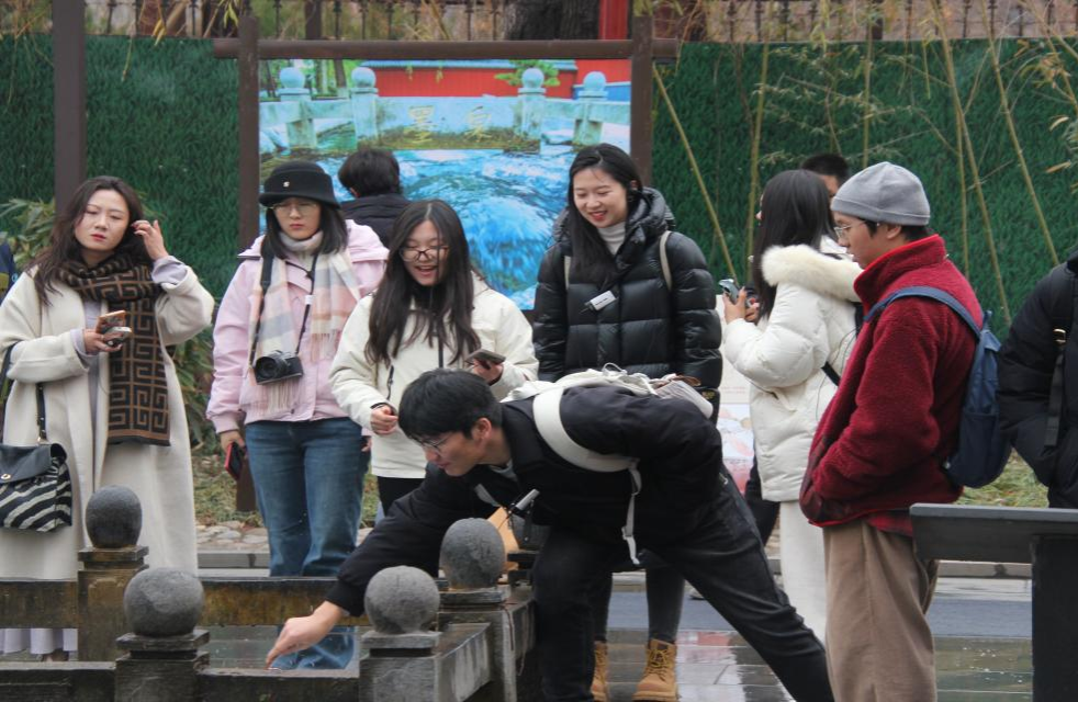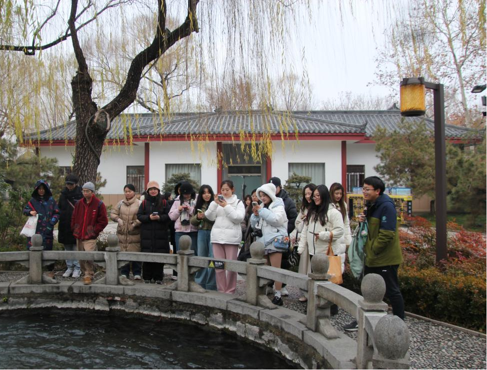 活动伊始,学院师生在专业人员的讲解下探访百脉泉、梅花泉、漱玉泉等泉眼,探寻泉水的地质成因,感受泉水中蕴含的生态智慧与人文情怀。师生驻足泉边,观赏泉水喷涌的自然奇观,聆听泉水与古城共生的历史故事,在山水相依的景致中深化了对“天人合一”传统文化理念的理解。研究生彭庆海感慨:“与导师共同观赏泉水,感受文韵,对于“泉城济南”有了更深入的了解。”