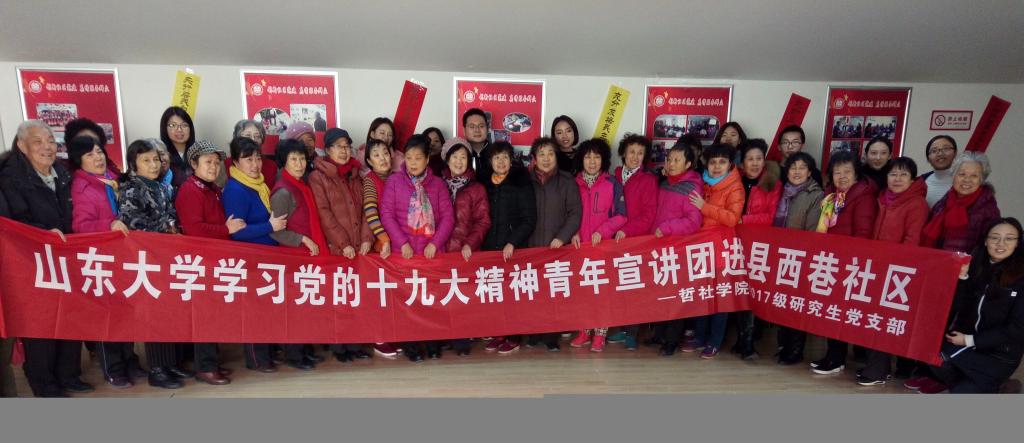 2017—2018学年寒假,为宣传贯彻党的十九大精神,引导青年大学生自觉践行社会主义核心价值观,学校团委组织开展了“新时代•青春梦——taptap点点官方网站青年宣讲团”寒假社会实践专题活动。taptap点点官方网站2017级硕士研究生党支部将理论与实践有机结合,积极响应学校的组织和号召,在学院的帮助和支持下成立了青年宣讲团,并在济南的县西巷社区圆满地开展了一次别开生面的宣讲活动。