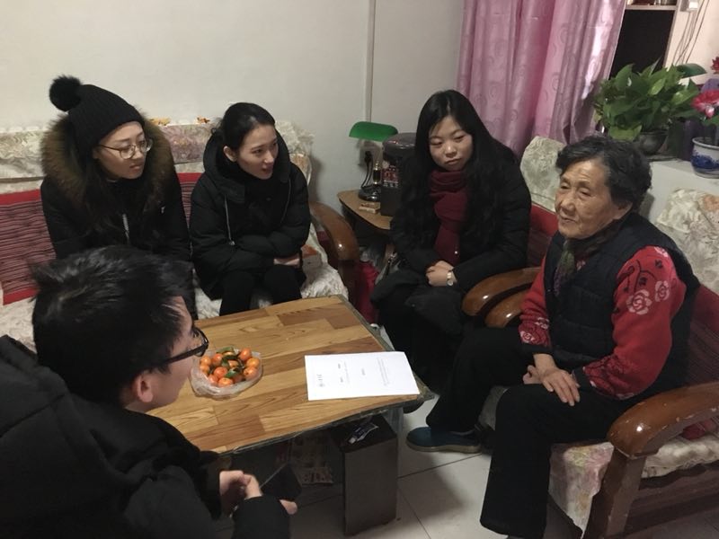 除了组织现场宣讲,宣讲团还在社区居委会的帮助下,探访因身体原因无法到场的孤寡老人,以期通过入户的方式不仅能够为他们传递党的十九大新政策、新思想,同时也为他们也送去节日的温暖。在确保老人们能理解的基础上,宣讲团成员以更加通俗、简明的语言向孤寡老人们宣传党的十九大新思想,对拉开新时代帷幕,包括“站起来”新中国成立、“富起来”改革开放、“强起来”现在科技的发展进行宣传。此外,宣讲团还为老人们介绍了包括“新四大发明”改变生活点滴的经济发展、建设更完善的法制社会、文化建设的发展、洁净美丽的生活环境的建设。临走之际,我们还为老人们带去了一些洗衣粉、洗衣液、肥皂、毛巾等日常生活用品,提前为老人们献上新年祝福。