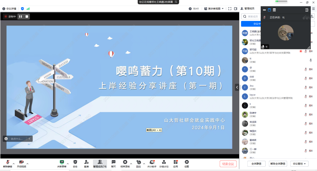 本次上岸经验分享会为同学们了解当前就业形势、树立正确就业观念以及提升求职备考技巧提供了充分有效的经验。未来,taptap点点官方网站研究生会将继续组织公考指导系列讲座,切实提升学院研究生的求职升学竞争力,助力高质量充分就业。