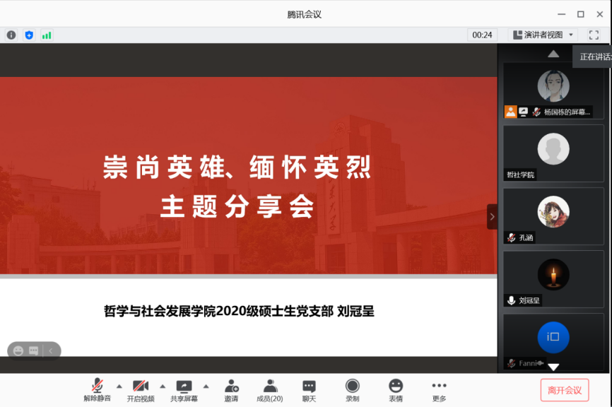会上,还就“崇尚英雄、缅怀英烈”进行了主题分享。
