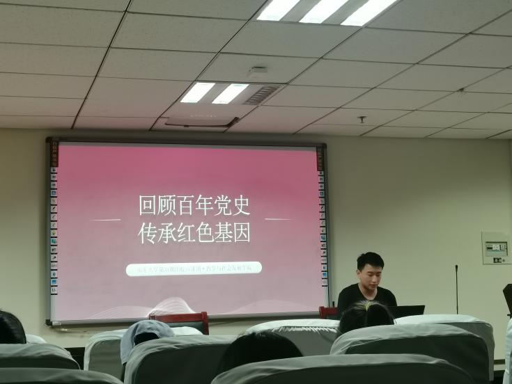 2021年5月19日晚19:00,taptap点点官方网站党史宣讲活动在知新楼A1408顺利举行。本次活动由taptap点点官方网站第三十一期团校成员组成的哲社党史宣讲一队主持,19级社会学班常张杰主讲,面向20级哲学强基班和20级社会学二班的全体同学开展。