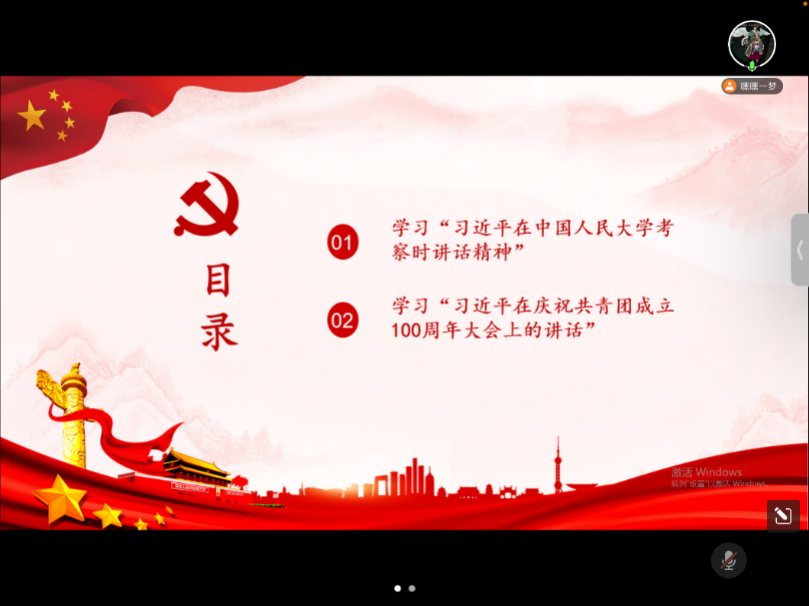 2022年5月12日,taptap点点官方网站学术硕士第二党支部开展主题党日活动,学习贯彻习近平总书记在中国人民大学考察时的重要讲话精神和在庆祝中国共青团成立100周年大会上的重要讲话精神。支部预备党员鉴伟伟同志主持活动并领学。