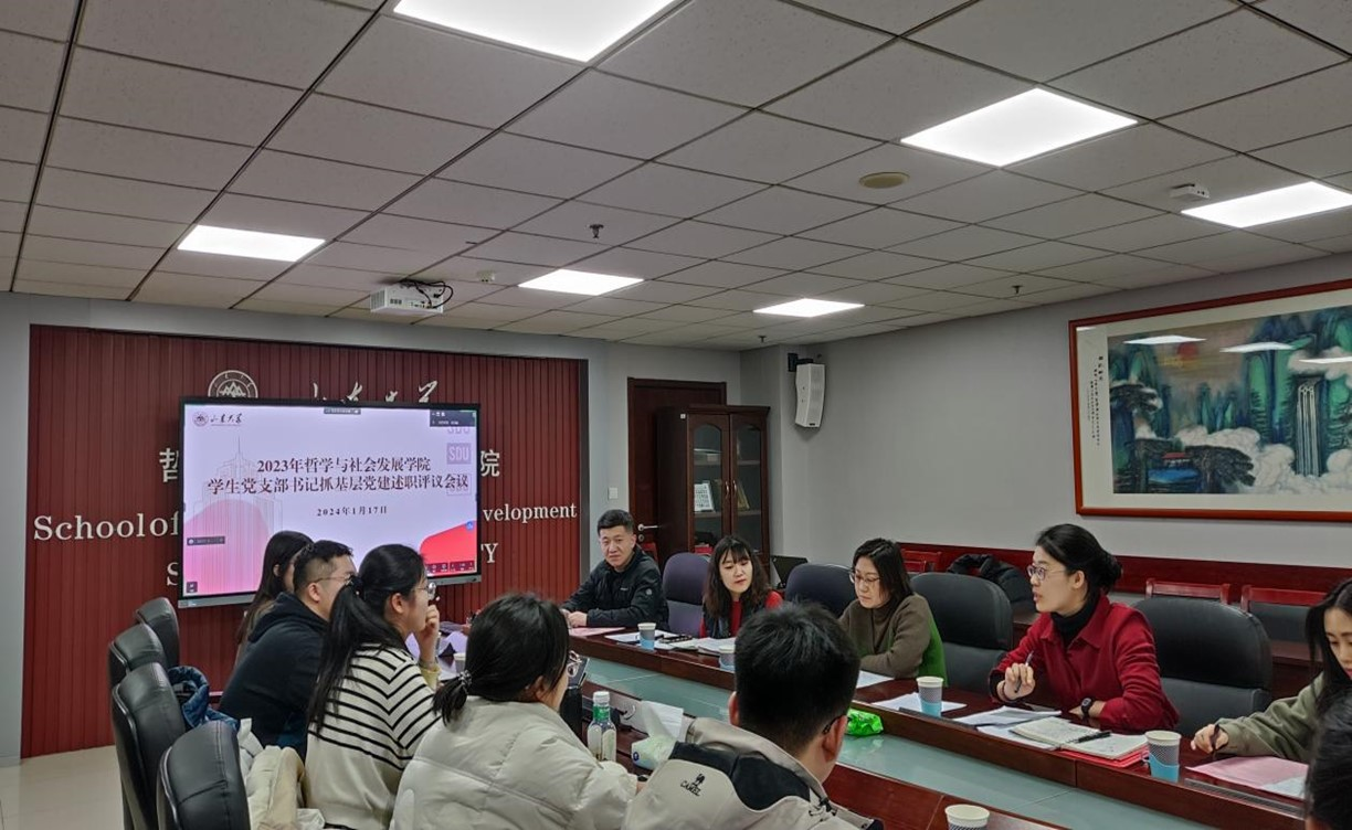 为深入学习贯彻习近平新时代中国特色社会主义思想和党的二十大精神,全面检验党建工作质量,进一步压紧压实党支部书记履行全面从严治党主体责任和抓基层党建工作职责,哲学与社会发展学院党委于1月17日在中心校区知新楼A1618室组织召开2023年度学生党支部书记述职评议会议。学院党委副书记马燕、翁祥栋到会指导,学院团委书记班梦姣、学院党务秘书孙德炜、辅导员封莹和吕汶鑫以及学院学生党支部书记和部分党员同志参加会议。