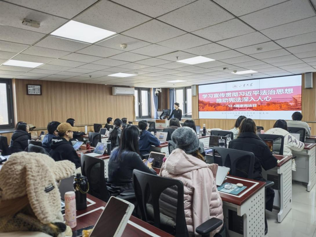 活动伊始,齐祥慧围绕宪法核心要义、宪法日设立背景及新时代全面依法治国的重要实践,为后续系统梳理宪法知识框架、深入解析宪法精神奠定了坚实基础。随后,支部组织集体观看“12·4国家宪法日”主题宣传片。宣传片通过典型案例呈现、历史资料讲解、现场访谈纪实等多元形式,生动展示了我国法治建设的丰硕成果,引导广大学生党员进一步理解宪法的权威性和时代价值。
